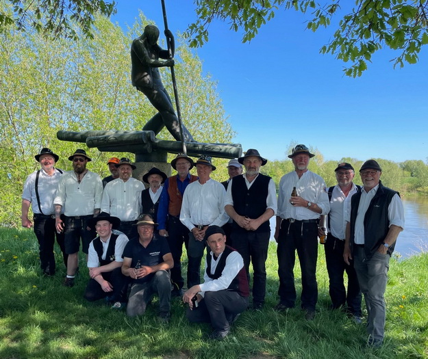 Menschen das Flößerdenkmal eingeweiht worden. Dazu wurde ein Weserfloß
