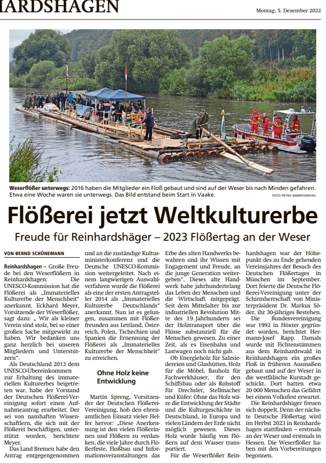 Flößerei zum Immateriellen Kulturerbe der UNESCO und dann 2022 mit der